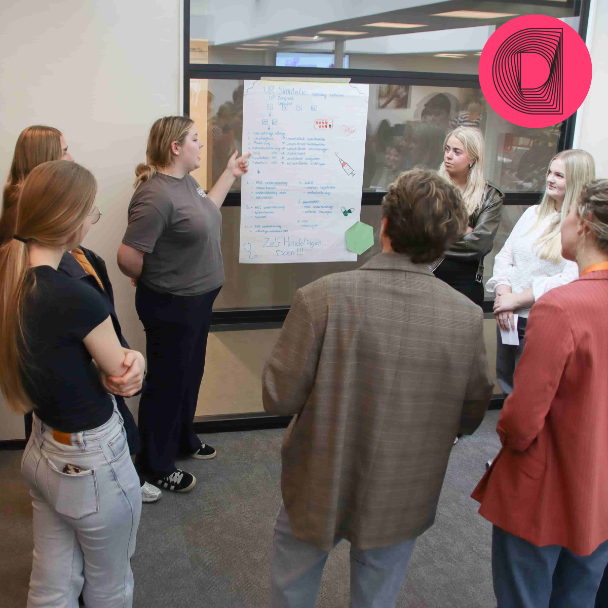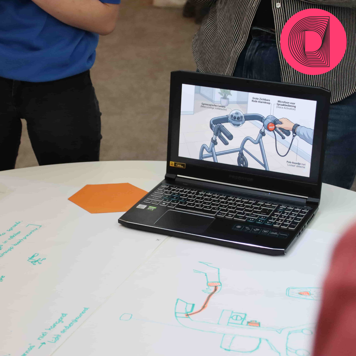 In plaats van direct naar oplossingen te grijpen, werden deelnemers uitgedaagd om eerst diep in de kern van het vraagstuk te duiken. Zowel MBO- als HBO-studenten van Firda en NHL Stenden werkten in teams samen. Vanuit de opleidingen Technicus Engineering, Zorg en Welzijn, HBO-V en de Master Health Innovation doorliepen zij een proces. Van probleemidentificatie en ideevorming tot het bouwen van een prototype.